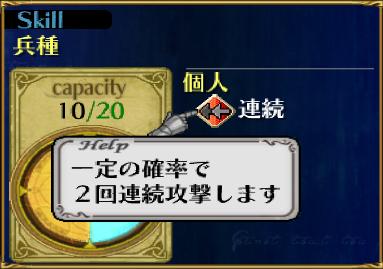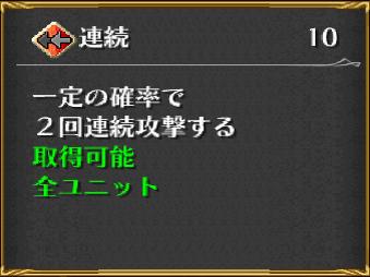中文描述:拥有该特技的成员,在战斗时可以以一定的概率连续发动两次攻击,并且与追加攻击无关