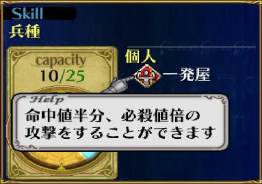 拥有该特技的成员,能够在战斗时打出“降低命中一半而必杀值增倍”的一击,也就是说,