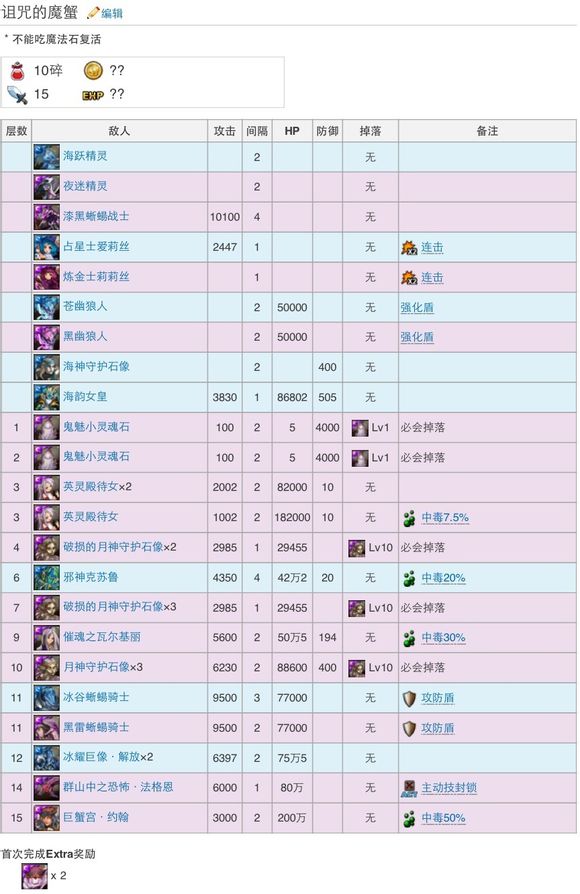 话说我们再聚集最新版的《神魔之塔》V3.0黄道十二宫,现在大家应该也都在撸起,初中高难度应该就没有人怎么感兴趣了,我们就直接说起Extra难度,下面把Extra难度数据资料分享给大家,分别有白羊宫、金牛宫、双子宫、魔蟹宫、狮子宫以及最后的处女宫。如果看了以下资料还是打不过的话,另外给大家送上自己的队伍组合心得,保证大家能安全通关。