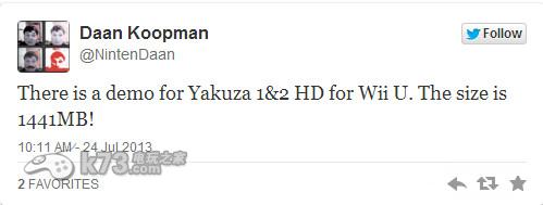 WiiU《如龙1&2 HD》试玩demo即将配信,大小为1141MB!