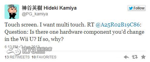 白金工作室的王牌游戏制作人神谷英树日前在其推特上发表推文表示了自己对于WiiU硬件的一些改动和期盼,其中最让他头疼的就是WiiU GamePad手柄不支持多点触摸!