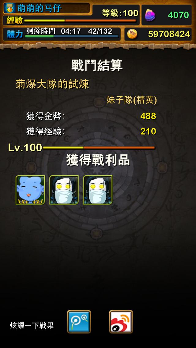 今天一管体力的战果。