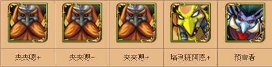 特点:偏向一波流的队伍配置,目的在于第一回合起手秒杀对方后排所有英雄,所以夹夹嗯的技能等级一定要高。在对方丧失后排队员的情况下,再慢慢磨死对方的前排角色。缺点是如果遇上对方前排有单体强力输出或是前排输出时,夹夹嗯可能很难存活。
