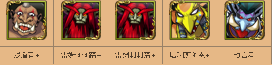 特点:比较均衡的队伍,使用雷姆刺刺蹄和塔利班阿恩的组合能让团队的血线升高,不论是前排或是后排都不至于被AOE法术秒得很厉害,同时又有不低的攻击。没什么缺点,也没有特别优点的阵容