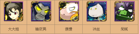 特点:呆贼的背刺配合暗夜男的旋风斩,起手就有秒人的威胁力,紧跟着大大姐和傻馒的随机3目标法术攻击更是能灵活的压制而不会落空浪费。全团中只有呆贼和沐丝比较脆弱,并不惧怕被秒。非常强力的一套进攻型阵容。