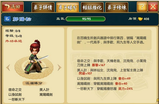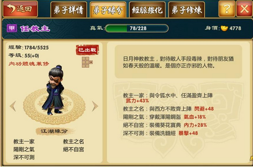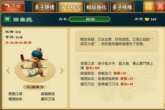 以提升「武力」为主的组合,能够强化弟子的攻击能力,即使是以普攻为主,也能轻松造成敌人的重伤害。