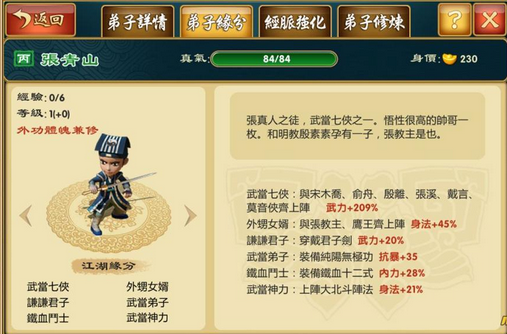 ▲「武当七侠」的组合需要提升到可使用七人阵的等级。