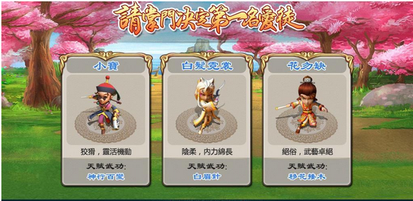 在游戏一开始,我们会有三种不同类型的大弟子可以选择,对于玩家来说,这三种类型的选择适合不同类型的玩家。强调攻击型组合的玩家,可以选择外功较强大的「花完美」,至于希望一开始就能有稳定的阵首肉盾的玩家,「小宝」是不二的选择。如果想要攻防平衡、四平八稳的发展方式,能力较为平衡的「白发霓裳」会是你的首选,同时也较容易能在装备上取得缘份的能力加成。