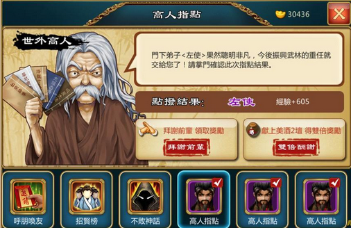 ▲ 随机出现的「高人指点」,可以让我们的弟子获得额外的经验值奖励哦!