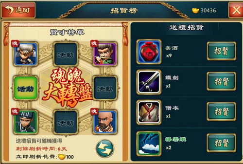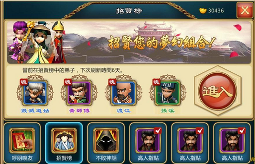 ▲ 只要有特定的道具,就有机会透过「招贤」来取得「贤才榜单」上的弟子魂魄哦!