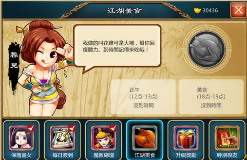 ▲ 「体力」是「闯江湖」必备的基础,想要维持体力时时满档,别忘了一天两次的「吃叫花鸡」哦!