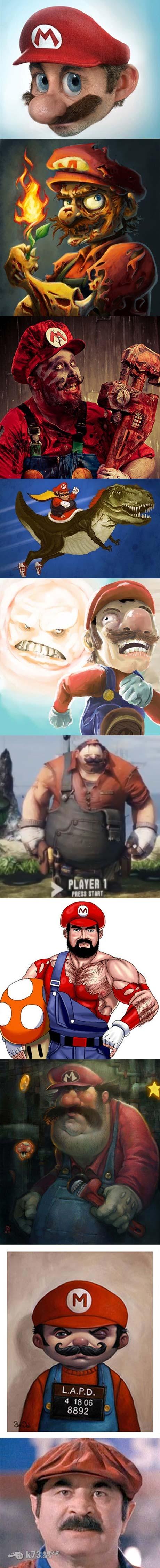 任天堂旗下知名的游戏明星中最知名的当然要属马里奥莫属了,这个可爱的大鼻子大叔伴随我们走过了不知多少个春秋。由于玩家年龄的逐渐增长,玩家们也开始以各种形式纪念这一经典系列,下面就给大家展示一组毁童年系列的马里奥图片,图片有些重口,大家请留意哟!