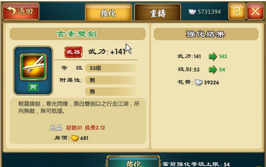 至于「强化」装备到底可以提升多少加成的能力呢?其实主要还是看装备本身的「小品质」,品质愈高,每次强化升一级所能提升的能力比值就会更高哦!但相对的,当装备进行强化时,每一次都需要花费一定数量的银两,而且随着等级提升,银两的需求也会更高。这也考验着玩家本身的财力啦!