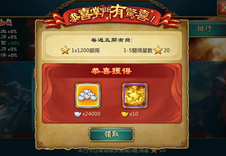 至于「魔教总坛」的奖励是如何计算的呢?其实非常简单,在每次战斗时只要胜利,就能获得1 星至3 星不等的评价,只要我们能一路挑战成功,每五关就能获得一次奖励结算的机会,直接将战斗评价的星等换算成为银两,并依星等不同获得各种稀有的宝箱、道具甚至是元宝呢!