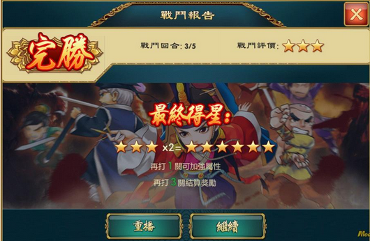 针对三种难度的选择,比较好的策略会是好好利用每天三次的失败机会。我们可以先从「奋战」的难度开始打起,力求闯过最多的关卡,来取得多次的奖励机会,之后的第二次、第三次挑战,就可以试着挑战难度较高的「力战」与「血战」了。
