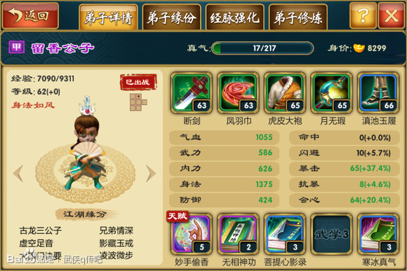 1850的身法就如此给力 要是有凌波微步该多好,在此是和各位说,沧海不是菜刀流派的,其实就是堆身法就行了,因为神仙姐姐的缘已经让他足够当一个小菜刀了,沧海和逍遥派最好的组合就是他姐姐。。。然后说下香帅,为他正下名