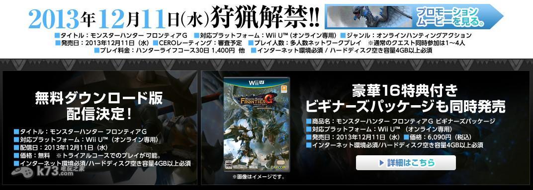 Capcom官方今天对其预计登陆WiiU及PS3平台的动作狩猎游戏《怪物猎人边境g》官网进行了更新,这款游戏除了会发行实体版以外,还会推出下载版,下载版的容量大小也一并得到了公开。