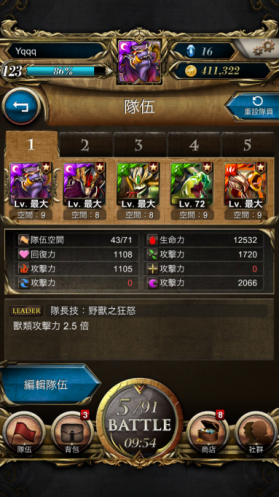 一进场也不用想回血了,因为会死而且没强化石(我忘记存了),就只好多做点强化石,接着吃一石復活黑狗八风爆发,然后又撑了一下,刚好快死的时候,蛇女跟玄武CD就好了,接着就蛇女先开,有爆发就爆发(当然要有强化石,光的木的心的都可以,因为可以转),再来玄武在挡叁回合,大概打到血剩五分之一的时候,我也快死了,毕竟兽队回復不大够,再加上我带蛇女,当时刚好黑狗朱雀八风CD好,我就赌了,爆发完血剩六、七分之一吧,接着就死掉再吃一石復活,心裡想着只要再一波爆发就好,意味着撑五回合就可以,不幸五回合中,刚好心石有缺,不小心就又死一次,再吃一石才通过。