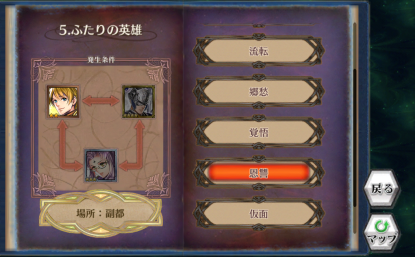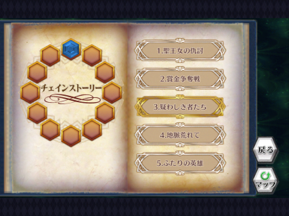 目前已开放的Chain Story有5章,每个章节要集齐所需的角色才会开启有关任务。个人觉得这是个很有趣的系统,抽到一些从来不会用的角色也可发挥作用。当中第3章「疑わしき者たち」的角色要求最低,只需5张R卡,其他章节都需要最少一张SR、甚至SSR卡。由于只要完成任何章节也可以获得SSR女主角,所以一般都是先以第3章为目标。