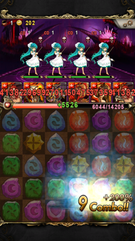 没磨到技连爆发都没的开木妹CD1,2,2,2,只能尽量打,滤珠一回后把全部的火珠奋力一搏,9 Combo勉强过关。