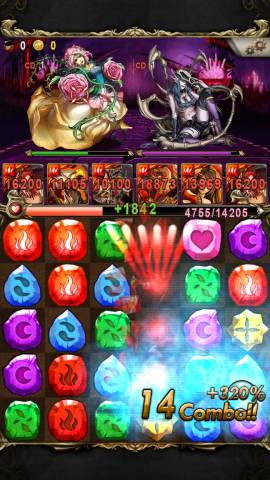 磨技用,起始两只就CD1带来一些压力,连段不太顺一直秒不掉左边的木精灵,连个5+3兼消杂珠,没想到就来了个天降14Combo.. ..