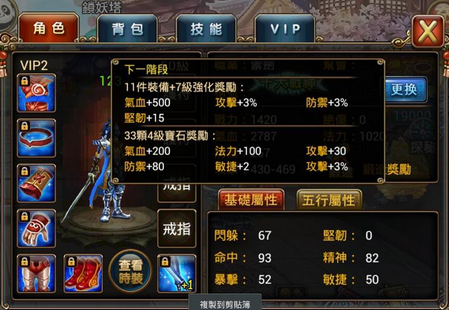 武器在强化以及升阶的时候除了攻击之外,还会额外附加命中的提升。前期系统任务解完再加上第一次挑战锁妖塔,玩家手上应该会拥有将武器进行升阶以及强化的材料。强化+3 再加上升3 阶,单从武器那边就可以至少获得72 点的命中加值,所以前期命中方面应该不会太过缺乏,在进行武器洗炼的时候,可以先从提高攻击伤害为主。