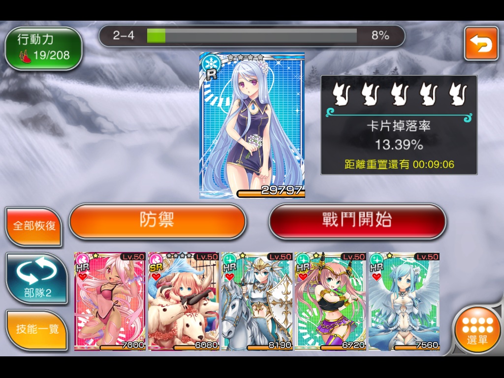 一开始我从2-1~2-4都先卡好限定敌人,然后準备好鞋子,剑,(自己怕鞋不够,多準备99%升级)、一组练功团(但要有一隻能3回合内秒限定敌人的卡),一组推魔女的卡(如果推不倒就留给好友帮忙推),一组有即死跟高发动率的卡-推遇到2万以上限定,3回合内做掉她。