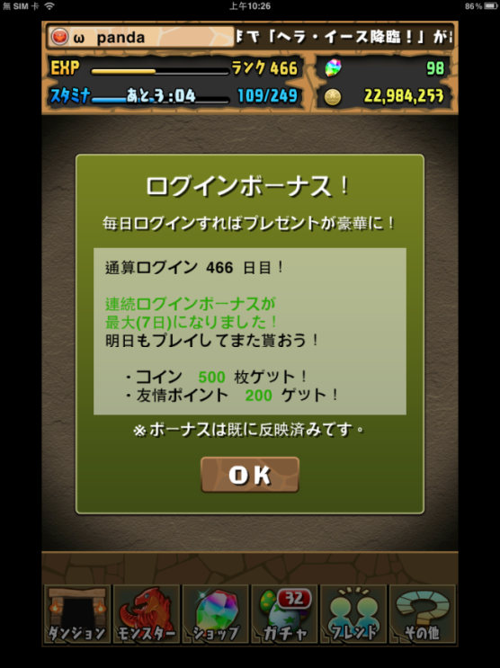 先说了~这帐号没课过金 不是石油王 因此等级和加蛋是用时间换来的,先来张天数图 这是两週前的图 466天466等。