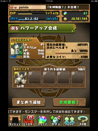 3.进化素材请到到一般关卡打~如缺神秘面 请週末到天海神打 其他亦同(我除了番人外 几乎其他素材都一般关卡取得,木曜日偶尔会打~但我会等这关的素材都一起缺的时后才会打,不然打来也是卖掉 浪费体力;
