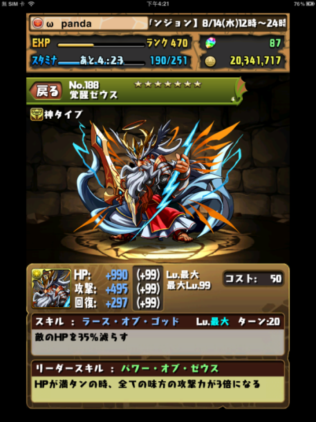 5.因为主刷上面这几关...因此你必须要有快速刷关的队伍(目标一场叁分鐘内),不然你刷几场你就 累了,至于队伍要看各位的朋友名单中常用的为主(我自己目前是用宙斯);