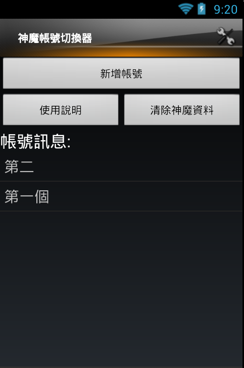2.点清除神魔资料后,在到神魔裡面新增第二笔神魔帐号,到软体介面新增第二笔帐号。