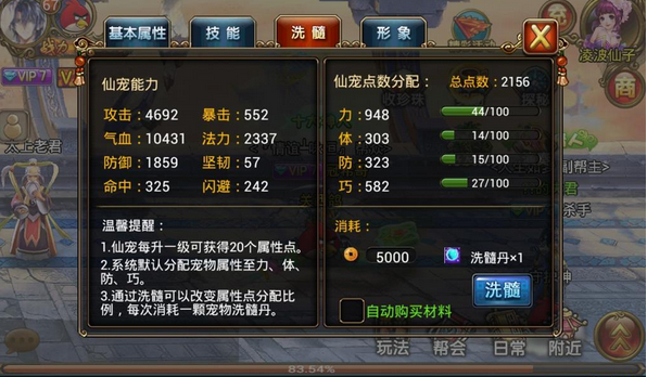 仙宠攻击、气血、法力等数值会随着属性变化而增减。由于给仙宠洗髓后,属性的分配比例是随机改变的,所以玩家没办法详细指定分配的比例,只能够选择大致的方向,然后等待洗出想要的结果。