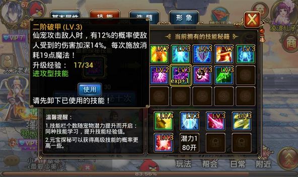 ▲破甲可以增加攻击后的伤害,对于主打输出路线的仙宠来说是必备的技能。