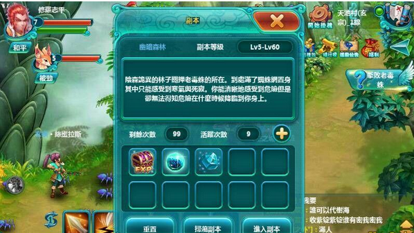 不同等级可以开启不同副本,当然等级、装备也会影响打副本的速度和困难度。玩家们透过游戏上方的”日常”选项就可以看到自己适合什么样的副本。