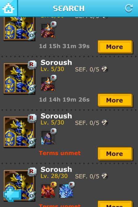 如果你看得到时间, 也代表你拥有对方想要的斗士, 可以成功交易.如果没出现时间, 只有"Terms unmet", 代表你没有对方想要的斗士, 无法交易。系统会自动把你能交易的资料往前排, 所以最新且满足资格的资料一定会出现在第一笔。