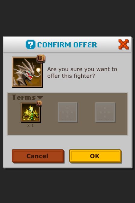 确定无误就点选"Accept Offer"吧, 还会再出现一次确认画面,会详列你出的斗士资料, 包含等级及进化次数(忘了截图, 请见谅),再点选一次OK就会完成交易了!