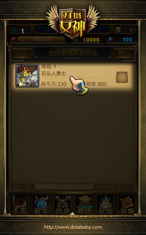 进入女神升级界面后,点击左下方的“选择祭品”,