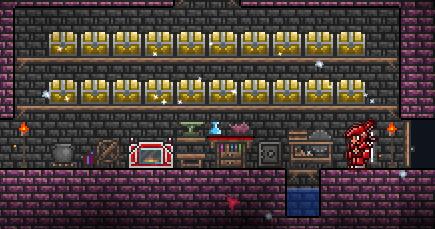 在地狱舖设一条打肉墙用的长路时,可以用灰烬块或是泥土,往后你下去就会有多到不行的火焰花跟闪耀根,所以其实...种植是有点自爽效果啦XD我个人只是喜欢这种自给自足的感觉。滑鼠移到药水增益图示上点击右键可以将此增益移除,不需要鱼鳃药剂的增益时可以将它移除。可以在你合成的地方放一个小水漥,方便合成瓶装水。