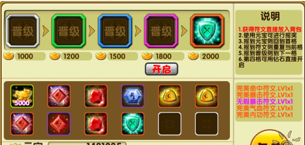 2.摇奖框中分别有:符文、元宝、晋级三个选项