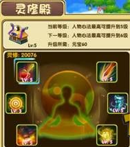 灵修殿中主要包括气血、命中、暴击、外功攻击、闪避以及免暴六种心法的修炼,升级相应的心法可以提升相应的心法值,但是,六种心法的升级受灵修殿等级的限制,灵修殿的升级也受玩家等级的限制,同样,在您的等级提升的时候要及时升级您的灵修殿,然后及时升级六种心法,以促进自己的提升。