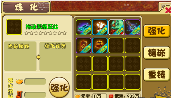 玩家需要通过地下城进入副本页面,副本分为单人副本和组队副本。副本分为普通模式好困难模式两种,每个副本都有开启的等级,每次进入副本都需要扣除玩家的精力值。炼化分为三种:强化、镶嵌和重铸。佣兵在整个游戏中有举足轻重的作用,不管你是想打擂台、下副本、虐其他玩家都需要有很厉害的佣兵,如果拥有很厉害的佣兵就可在游戏中称王称霸。