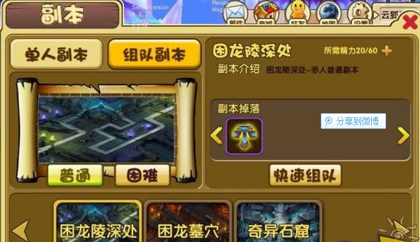 二、 组队副本:困龙陵深处、困龙墓穴、奇异石窟,开启等级为:15、20和25