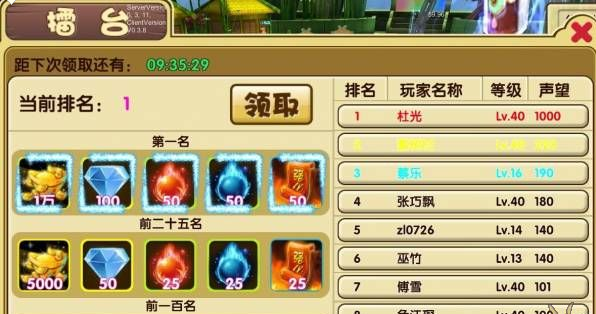 根据玩家的名望值进行排列,排行榜每小时更新一次排名,每天从0点开始排行榜前一百名的玩家可领取上一天的奖励,排名越靠前奖励越丰厚。