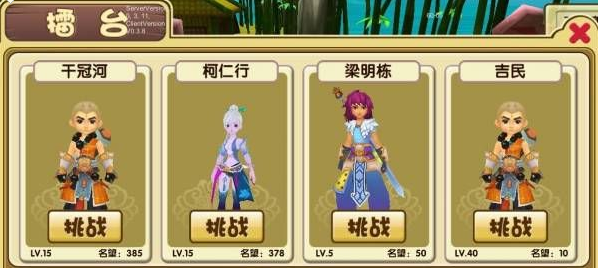 玩家每天有15次机会进行挑战,每次挑战系统会根据两个玩家的等级给出相应的经验值和名望值。当玩家用完当天的挑战次数后,可以使用英雄帖增加挑战次数,一张英雄帖增加一次挑战。