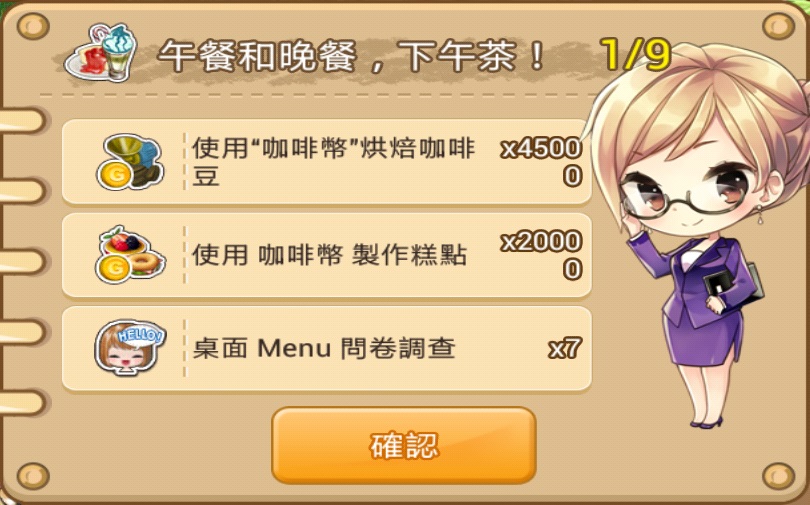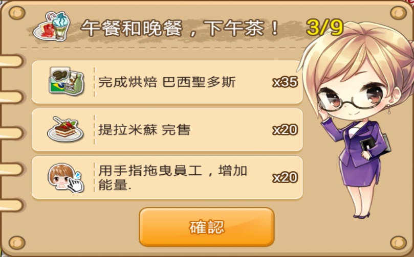 首行得感谢好妹子Hung Ju的分享,妹子喜欢玩这游戏还玩的这么好,谁取到了肯定每天可以喝到最香的咖啡,开个玩笑,这里是LV35级任务完成『现在是Brunch时段』后出现的任务,也就是题中所看到的午餐和晚餐,下午茶的攻略方法了,一起看看吧!再次赞下妹子的排版看着真舒服,这点可以看出妹子肯定是个爱干净整洁的好姑娘!