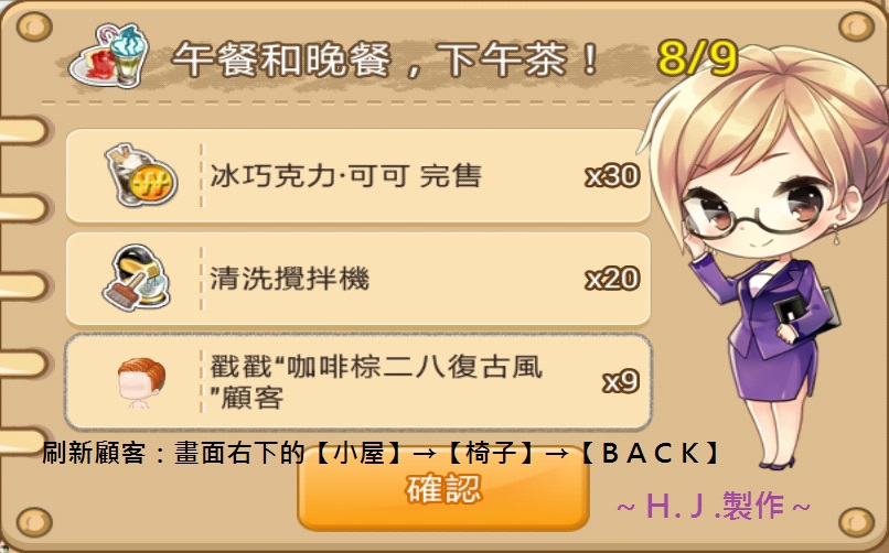 以前H.J.都很舍不得烧钱~现在都很"青菜"了!看到要耗咖啡币的任务!为了快速过关~都是直接【制作】→【丢弃】反覆动作后,就过关啰!