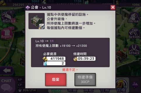 ▲使魔数量直接影响部队强度,所以升级军营、公会很重要。