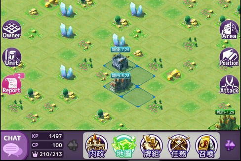 跟着任务盖建筑时,建议先把田地、玛那之树、民房盖满,并持续升级,因为初期金币跟玛那消耗很快,通常都会盖到没钱,城市第一区的建筑盖满后,就会解开第二区,滑动手指就可以直接切换,所以玩家不用怕没空间盖完所有建筑;因为一开始解任务就会直接攻下第二块空地,想要冲快游戏进度的话,就直接升级土地将扩张数量最大化后再设立据点,才能解开所有内政建筑格数,LV1 的土地如果直接盖新据点的话,就只有一半的格数能盖建筑相当浪费,新据点要花三小时多才会完成,盖好之后就多一个城市可以管理了,建筑方式和一城一样先把资源建设盖满。