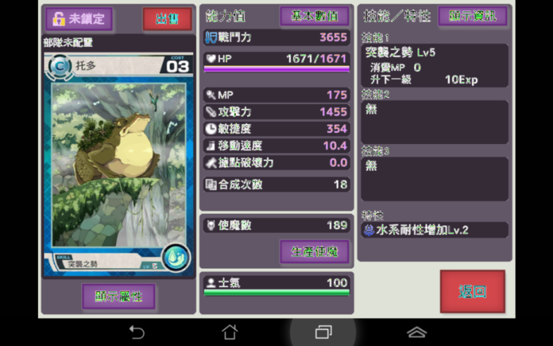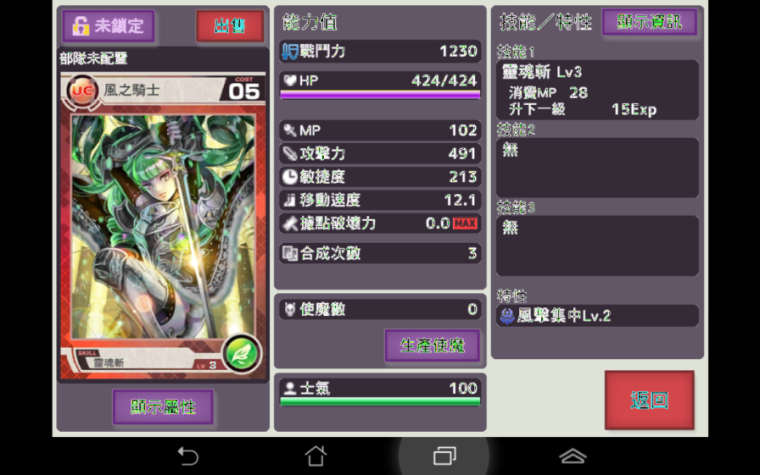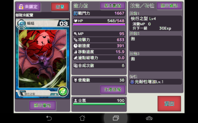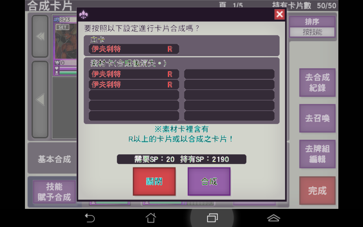 像是SR级的「金刚暴击」吃C级的「土箭」会毫无反应,就只会把卡片的素质吃掉,不会有技能升级的作用,这点也要多留意。