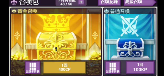 好一点的卡片通常会需要叁种技能,第一个是攻击型态的技能,第二个则是增加自己攻击力的技能。这样子搭配的话会对战斗比较有好处。而耐性部分也尽量升越高越好。某些超级强大的技能真的就是要很有运气才能得到,像是全体攻击加成,技能等级很低的时候加成就高的吓人,但当然那也是需要SR以上的卡才有可能出现,越好的卡COST越高,出现机率也是低到不行,往往都是人跟CP一样被抽到乾巴巴才可能有个一两张,这时候就要希望台湾这边的活动很多,可以常常解一些关卡或限定EVENT,然后有排名限制跟参加活动,这样让玩的人都能够参与其中感觉就还不错。